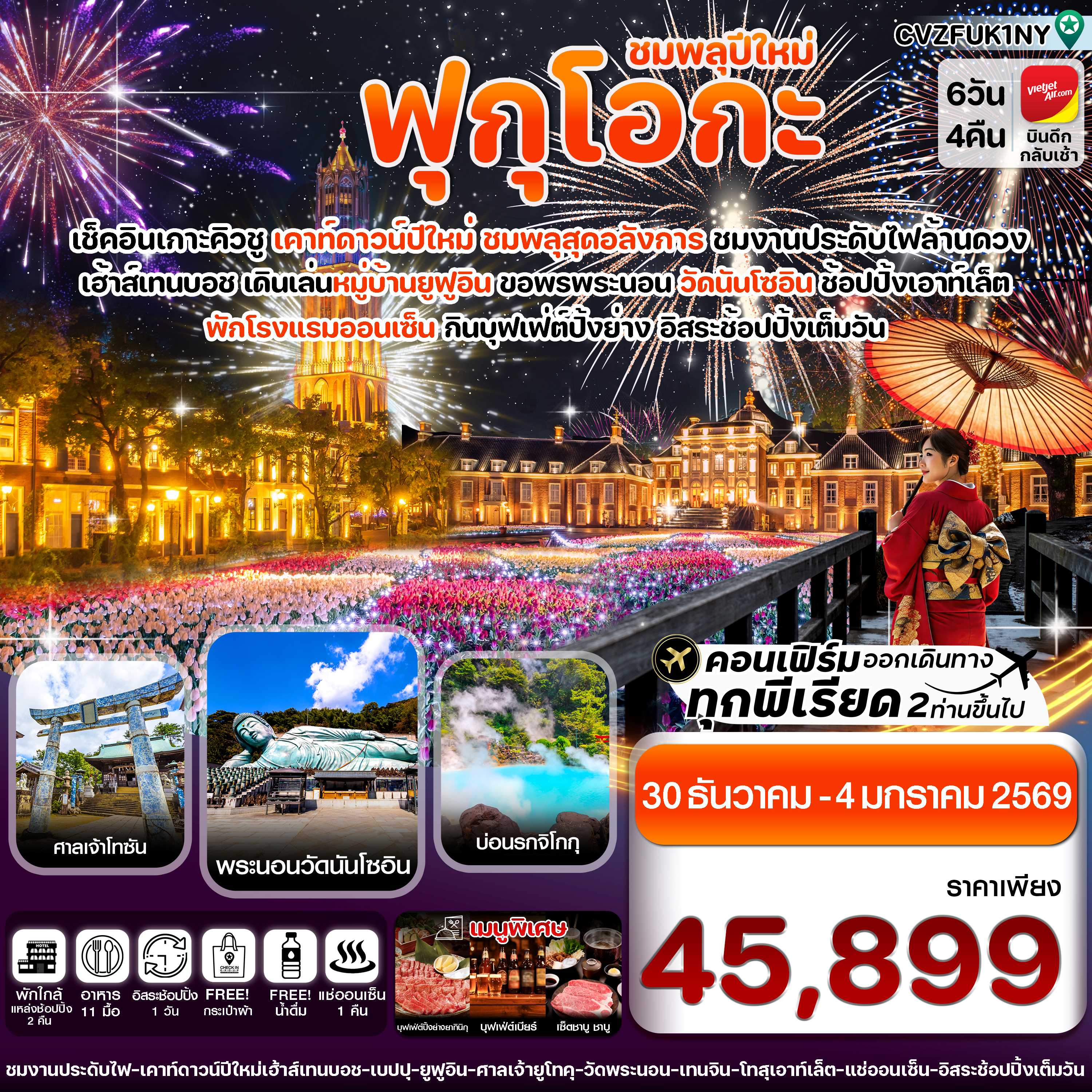 ทัวร์ฟุกุโอกะ 2025 ทัวร์ญี่ปุ่น 2025 ราคาถูก ตลอดปี 2568 เที่ยวแบบคุ้มสุดๆ ถูกกว่าไปเอง อาหารครบ ไกด์ชำนาญเส้นทาง ทางบริษัท มีโปรแกรมทัวร์ญี่ปุ่นหลากหลายเส้นทาง มากกว่า 300 โปรแกรม อาทิเช่น โตเกียว ภูเขาไฟฟูจิ โอซาก้า เกียวโตทาคายาม่า ฟุกุโอกะ ฮอกไกโด เซ็นได โอกินาว่า และเรายังรับจัดกรุ๊ปเหมา ดูงาน สัมมนา ด้วยประสบการณ์มากกว่า 19 ปี เที่ยวญี่ปุ่น Japan Tour 2025 ทัวร์ญี่ปุ่น 2568 และ Fukuoka Tour 2025 ทัวร์ฟุกุโอกะ 2568