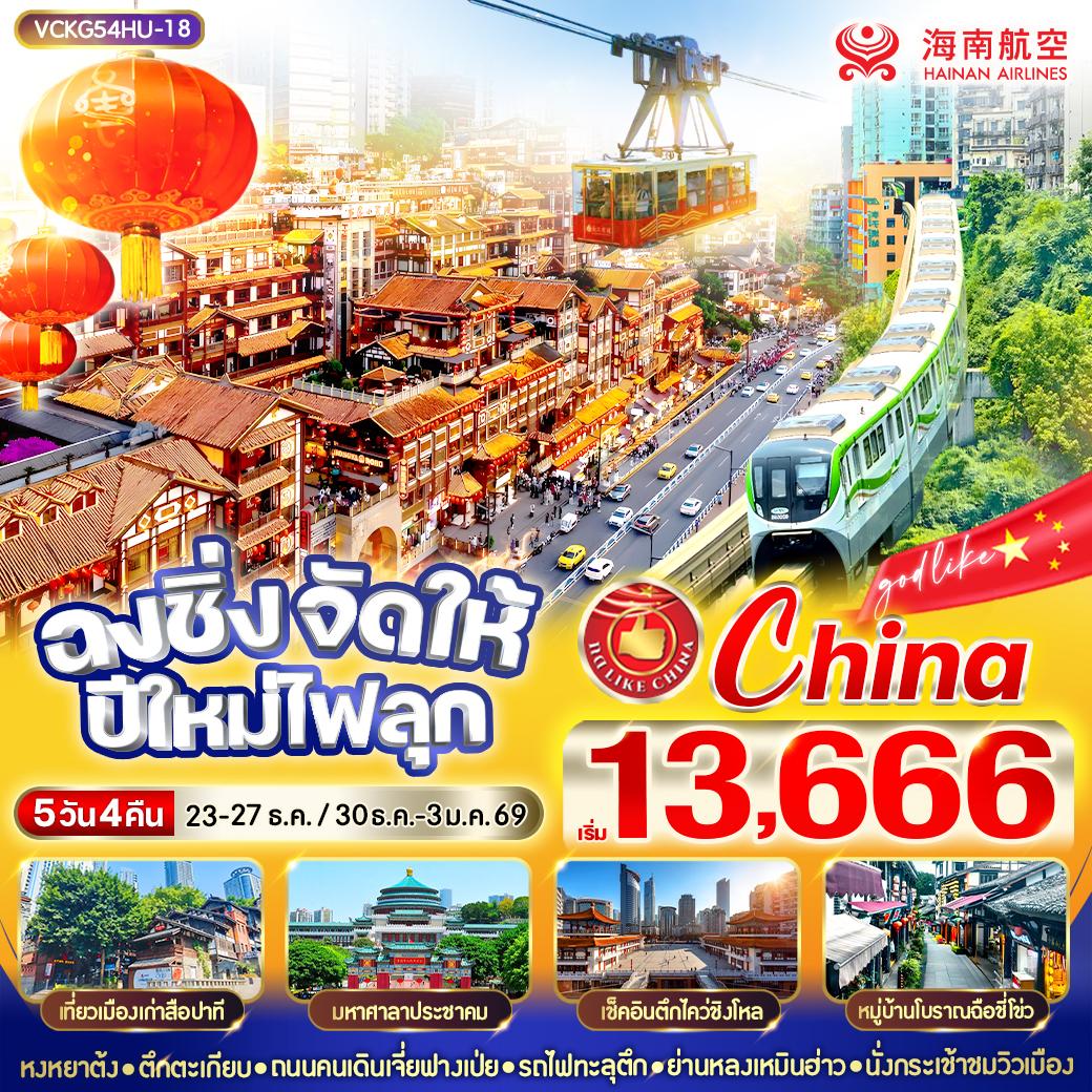 ทัวร์จีน 2568 ทัวร์ฉงชิ่ง 2568 ราคาถูก ด้วยโปรแกรมที่หลากหลาย มากกว่า 100 โปรแกรม อาหารครบ รับจัดกรุ๊ป ดูงาน สัมนา กรุ๊ปส่วนตัว จัดได้ตามงบประมาณ ประสบการณ์มากกว่า 19 ปี มั่นใจ เชื่อถือได้ China Tour 2025