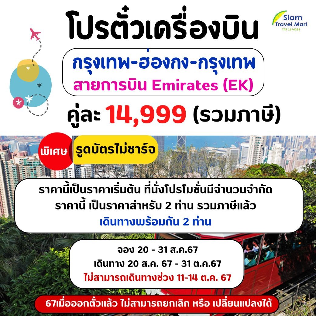 แพคเกจฮ่องกง(ตั๋ว+ที่พัก+ทัวร์ไหว้พระ)
