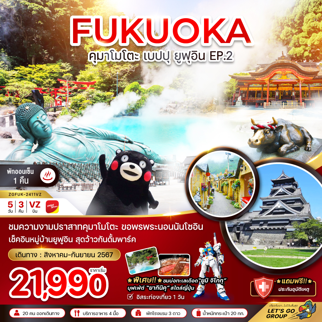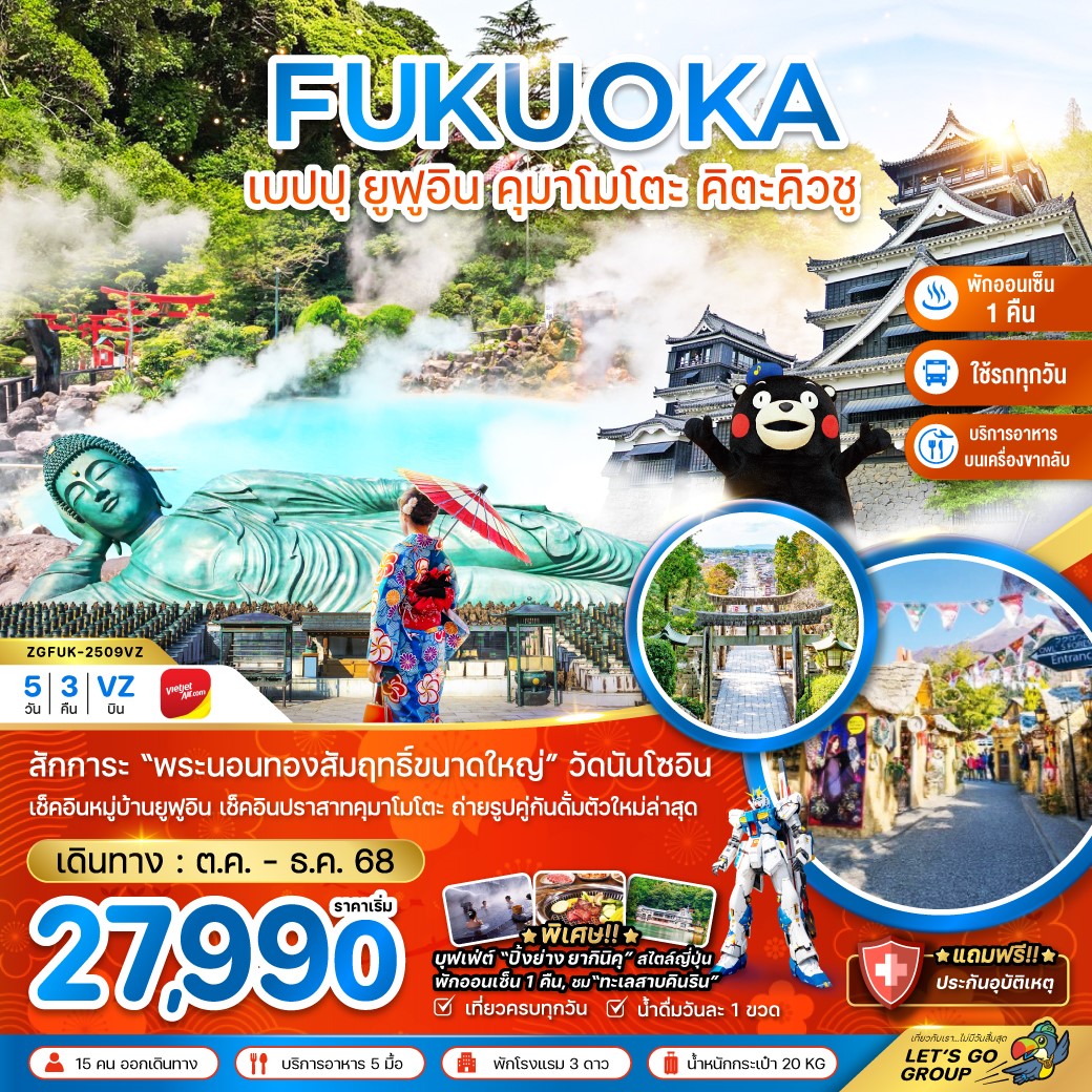 ทัวร์ฟุกุโอกะ 2025 ทัวร์ญี่ปุ่น 2025 ราคาถูก ตลอดปี 2568 เที่ยวแบบคุ้มสุดๆ ถูกกว่าไปเอง อาหารครบ ไกด์ชำนาญเส้นทาง ทางบริษัท มีโปรแกรมทัวร์ญี่ปุ่นหลากหลายเส้นทาง มากกว่า 300 โปรแกรม อาทิเช่น โตเกียว ภูเขาไฟฟูจิ โอซาก้า เกียวโตทาคายาม่า ฟุกุโอกะ ฮอกไกโด เซ็นได โอกินาว่า และเรายังรับจัดกรุ๊ปเหมา ดูงาน สัมมนา ด้วยประสบการณ์มากกว่า 19 ปี เที่ยวญี่ปุ่น Japan Tour 2025 ทัวร์ญี่ปุ่น 2568 และ Fukuoka Tour 2025 ทัวร์ฟุกุโอกะ 2568