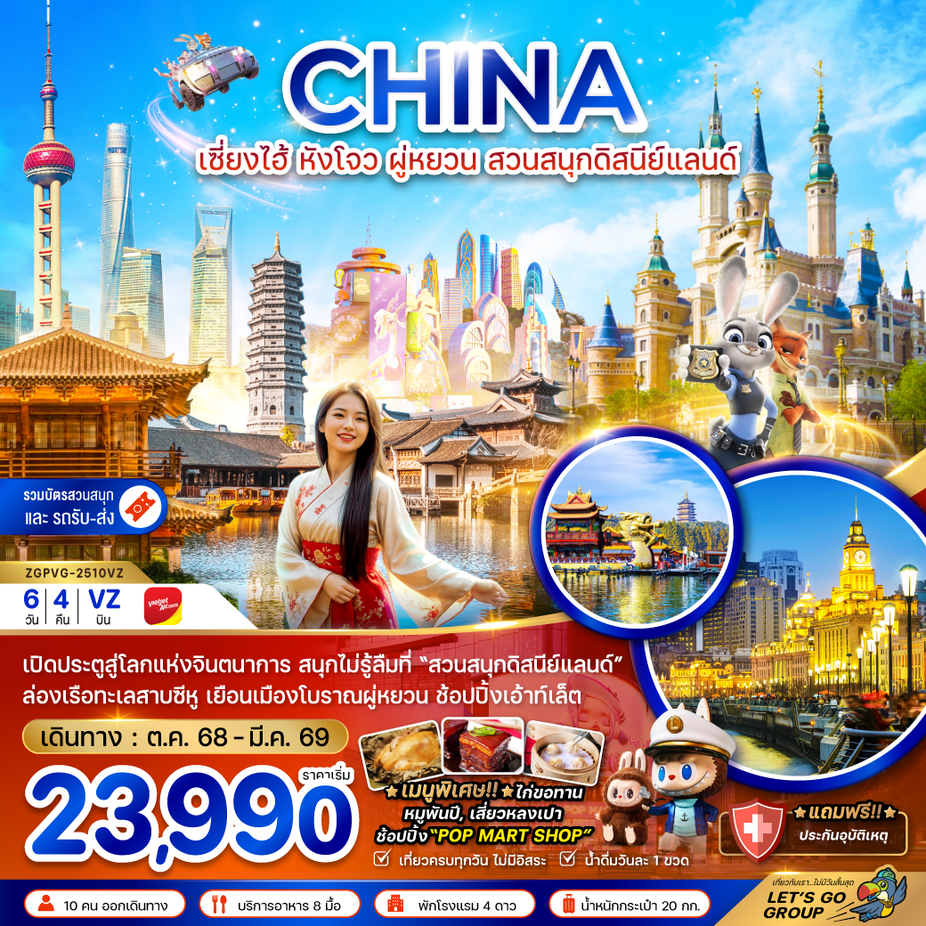 ทัวร์จีน 2568 ทัวร์เซี่ยงไฮ้ 2568 ราคาถูก ด้วยโปรแกรมที่หลากหลาย มากกว่า 100 โปรแกรม เที่ยวครบทุกเส้นทาง เซี่ยงไฮ้ ยูนิเวอร์แซล ชมพอไข่มุข ช้อปปิ้ง อาหารครบ รับจัดกรุ๊ป ดูงาน สัมนา กรุ๊ปส่วนตัว จัดได้ตามงบประมาณ ประสบการณ์มากกว่า19 ปี มั่นใจ เชื่อถือได้ China Tour 2025 และ Shanghai Tour 2025