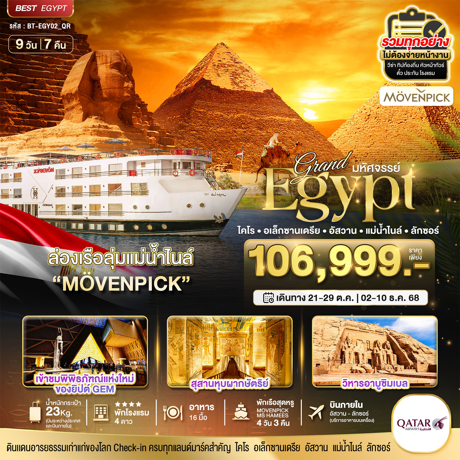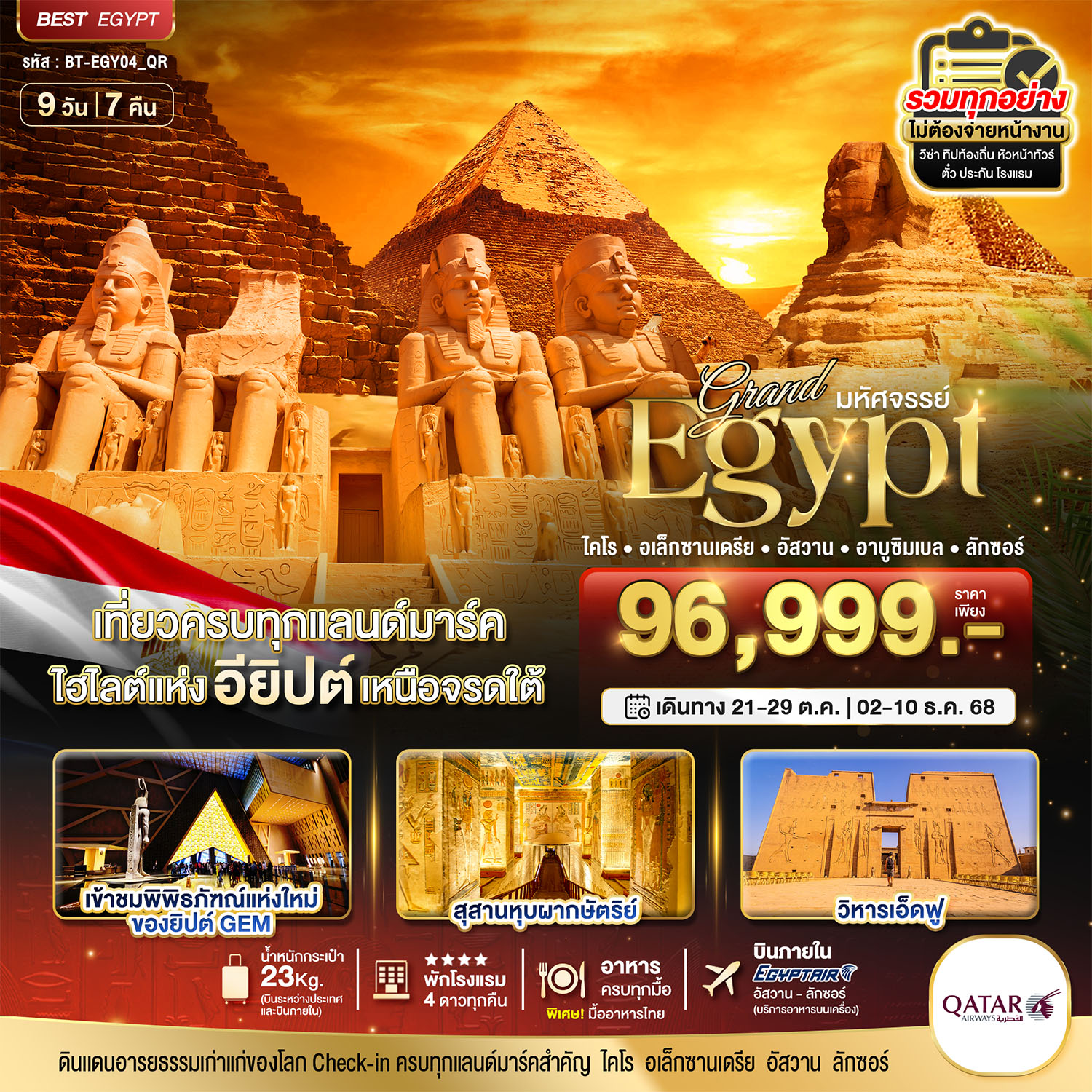 ทัวร์อียิปต์ 2568 ราคาถูก กับรายการทัวร์ที่มากกว่า 50 โปรแกรม ราคาถูกสุด Egypt Tour 2025 และเรายังรับจัดกรุ๊ป ดูงาน สัมนา ด้วยประสบการณ์มากกว่า 19 ปี Let's go Egypt